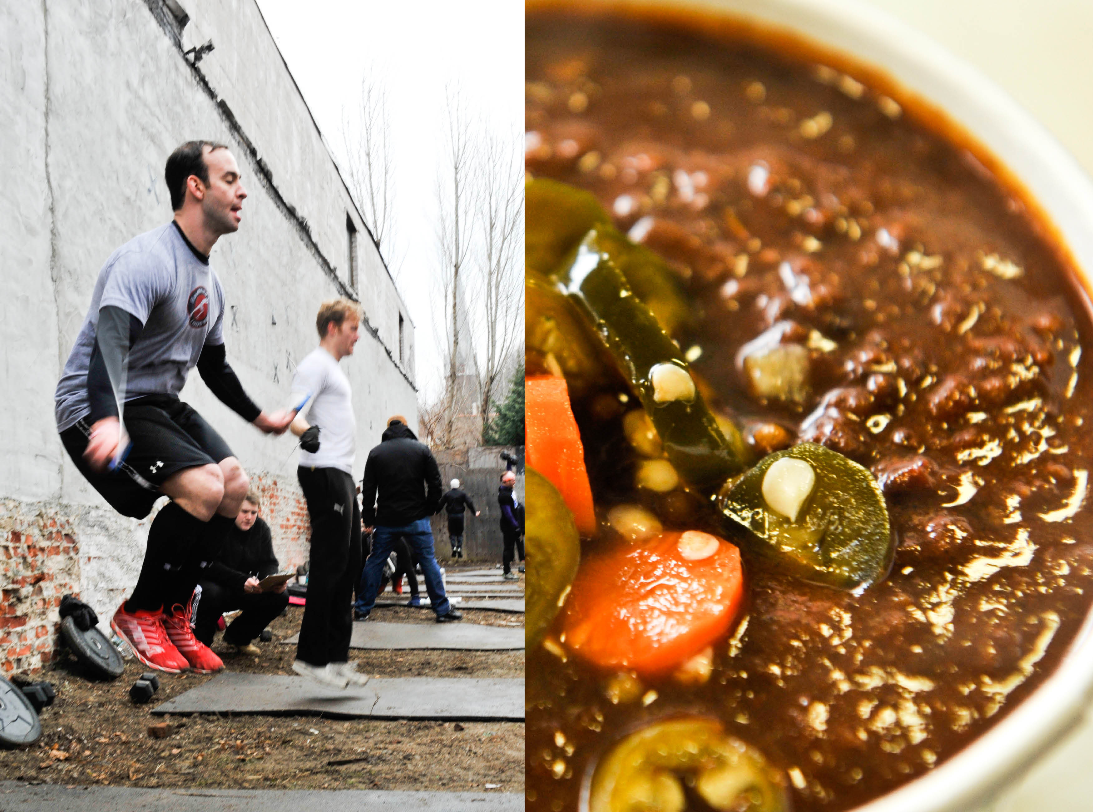 A little over 2 ½ months ago I started drinking the CrossFit cool-aid and decided to participate in LIC’s CrossFit 2nd Annual Frostbite Competition. Most of my friends thought I was coo coo for cocoa puffs to want to spend a Saturday freezing my tuches off while performing a variety of exercises in a muddy half-frozen abandoned lot outside. I sure do love me a good challenge. The workouts were HARD and the cold made them that much HARDER. But I survived and really appreciated all the support and camaraderie of the other athletes, coaches, judges, and spectators. Everyone was wicked awesome but let’s not forget about the food. Yes I am that girl that shows up to a fitness competition eager to check-out the food and FOODfreaks couldn’t have been a more fitting food truck. They were serving up warm and delicious grilled cheese sandwiches, chillis, and side-dishes like crispy fried brussel sprouts. I definitely need to pay them a visit (perhaps when it is a tad warmer out) at their FortGreenePark location in Brooklyn.