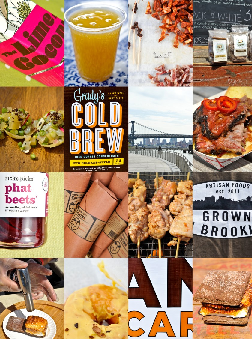 Every Saturday on the Williamsburg waterfront between North 6th and North 7th St., from 11am to 6pm, Smorgasburg brings together food entrepreneurs and established purveyors from New York City and across the region selling both packaged and prepared foods, fresh produce, and other food-related stands. The market is open rain or shine, and man-oh-man, did I get my eat on this past weekend. As you can see from all the photos, I sampled a lot of food. I think I managed to hit up 50 vendors. Some of my favorites were the Lime-in-the-Coconut candy bars from Liddabit Sweets, the S’morgasm from S’more Bakery, braised Pork Belly with sliced cucumber, pickled jalapeno, scallions and hoisin from Bite Size Kitchen, and a shot of Vichyssoise soup from Sea Bean Goods [they are a micro-soupery which I’m dying to try their soup subscription]. If you don’t already know, I have an obsession with carbonated water – so obviously Brooklyn Soda Works‘ Apple Ginger Soda was a major hit to my taste buds. I also picked up some of Grady’s Cold Brew which is a New Orleans–style coffee concentrate and the best staple for a girl that doesn’t have a coffee maker.