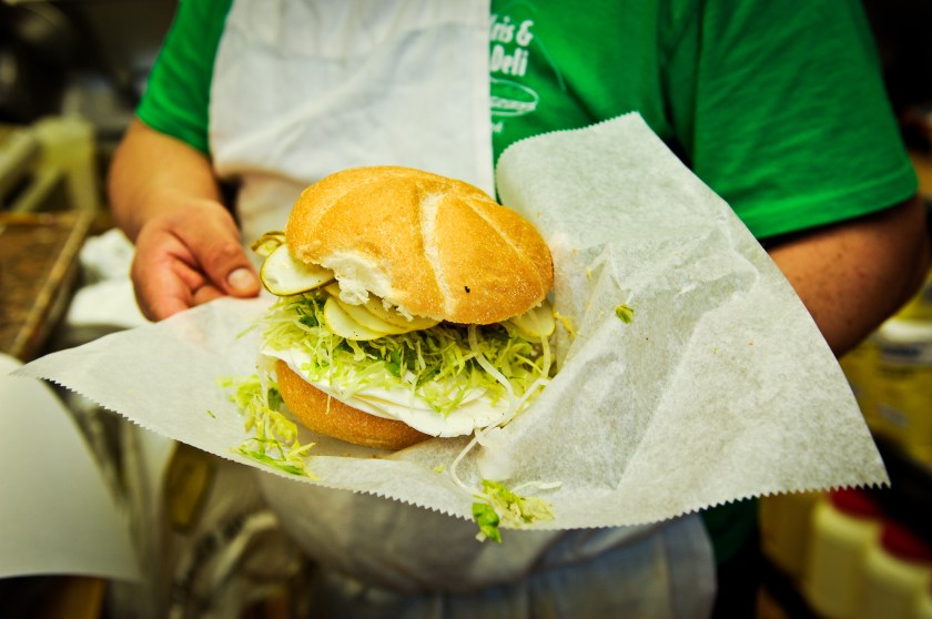 Donna D.’s signature sandwich is fresh mozzarella on a roll with tomatoes, shredded iceberg lettuce, thinly sliced pickles, a small amount of white onions which must be sliced paper thin and honey mustard sauce. As simple odd as this sandwich may sound, very few delis have been able to perfect it. Either the bread is stale, they don’t shred the lettuce, or even **gasp** use processed mozzarella or even **larger gasp** don’t use the right honey mustard sauce (which I actually don’t even know the name of the brand I prefer). Only two delis have been able to master my sandwich, Toasties in NYC and the Ave in New Rochelle (yes I’ve schlepped to Westchester for my favorite sandwich). You would too if you have ever experienced the amazingness of the Ave.