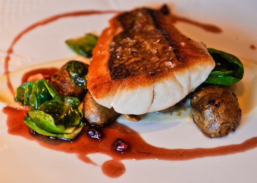 SPIGOLA NERA local black bass, beluga lentils, cipollini onion, trumpet royal muchrooms, red wine jus