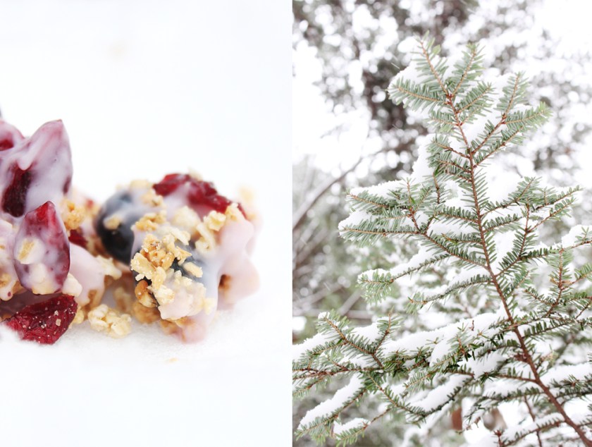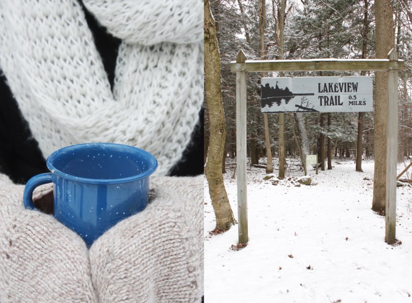 Last weekend I woke up to a beautiful snowfall and decided it was the perfect morning to grab what breakfast food I could find in the kitchen and take a relaxing walk at nearby Beaver Lake in Baldwinsville, NY. Within about 5 minutes I threw together a bag of croissants, heated up some hot cocoa, and grabbed some berries, granola and yogurt. It was a great winter preview to get ready for the fun-filled skiing adventures, cozy fires and chunky knit scarves to come.