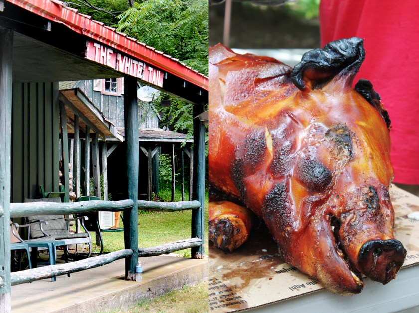 Although not the most beautiful looking food shots, pig roasts have become such a tradition in today’s food culture, I just had to post it. This past weekend, two wonderful friends of mine got married in Ellicottville in Western New York, and to keep the festivities going all weekend long, had a pig roast at the family camp Sunday afternoon. Other highlights included picnic favorites– the famous salt potatoes of Syracuse and steamed corn on the cob.