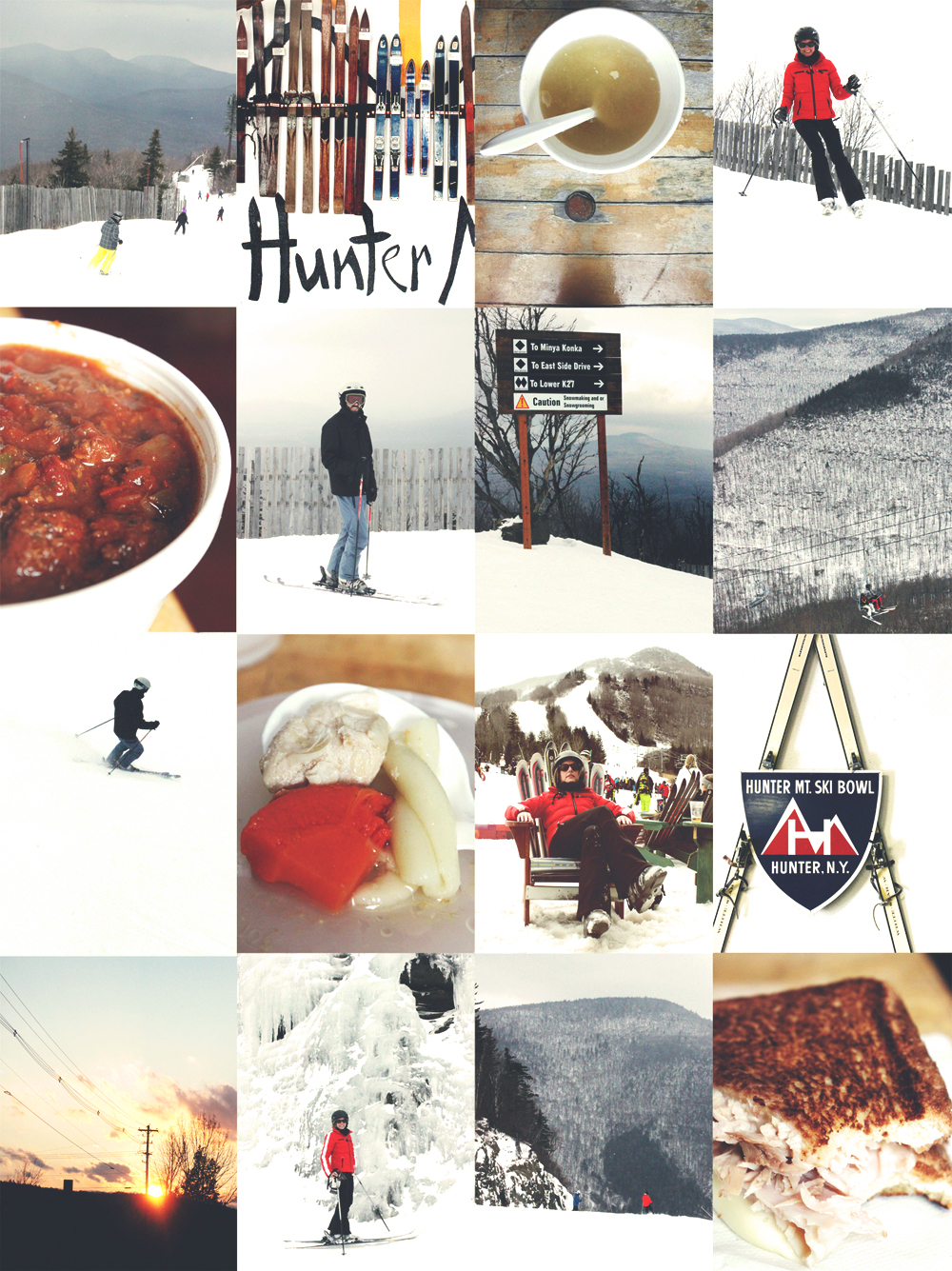 For a local New York ski escape, Hunter Mountain isn’t too bad of an option. I recently hit the slopes for a taste of winter– and a taste of Scottie’s Summit Lodge’s delicious chili, chicken noodle soup and grilled turkey and cheese sandwich. Housed in a circular lodge boasting beautiful views of the Catskills below, I could very easily curl up by the fireplace amongst all the antique skis displayed from various years. With outdoor seating for warmer days, it’s a great change of pace from the lively base lodges and perfect to warm up before that next run. Happy Friday! x