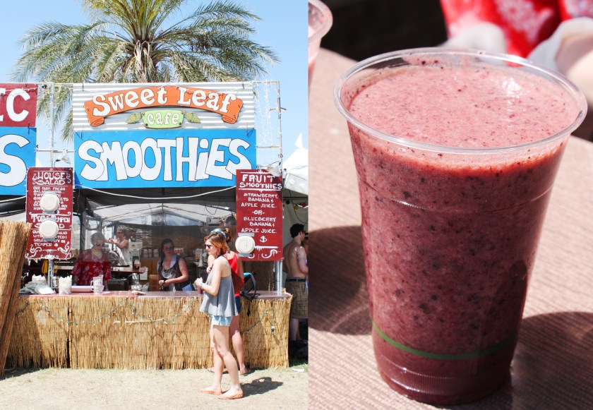 This smoothie and snack stand, Sweet Leaf, has quite the resume of festivals, setting up everywhere from Coachella to Bonnaroo. Providing the essential thirst quenching drink for those hot desert afternoons, these guys serve up some of the best. Based in Oregon, this traveling restaurant uses a solar powered kitchen to prep their organic smoothies, sandwiches, salads and more.