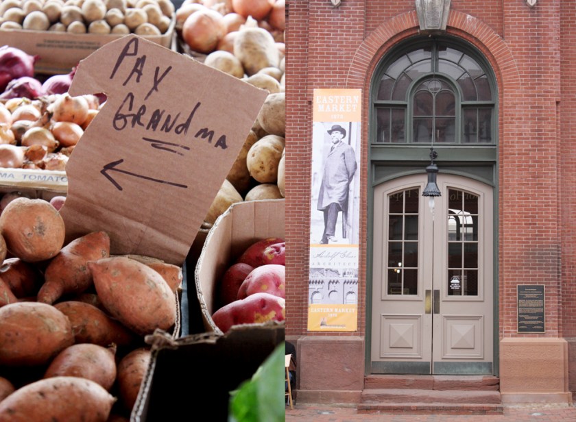 One of my favorite days of the week are Sundays. Nothing beats a morning browsing the farmers market and and an afternoon cooking with friends or family before yet another work-filled week begins. After hearing such great things about D.C.’s Eastern Market, it was on my list of places to check out. Comparable to New York’s Brooklyn Flea, but with a great indoor food market as well, we explored the cute streets of Capitol Hill, shopped and stocked up on fresh food to make homemade sauce for dinner. I couldn’t have asked for better hosts, as they prepared a delicious salad, sauce and pasta all the while I had fun shooting and using their fantastic Anthropologie-inspired kitchenware. Happy Friday and don’t forget to explore your own local farmers market this weekend! x