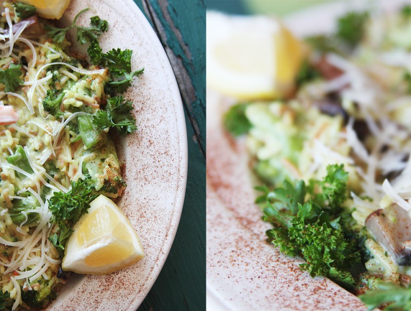 Pasta dishes are always great solutions for dinner parties, they’re quick and easy to throw together for a crowd-satisfying meal. Last time I was in Syracuse we served up this fettucini dish with shrimp scampi, eggplant, portobello mushrooms and a garlic butter sauce. Another fun dish I photographed was this side of rice and broccoli.