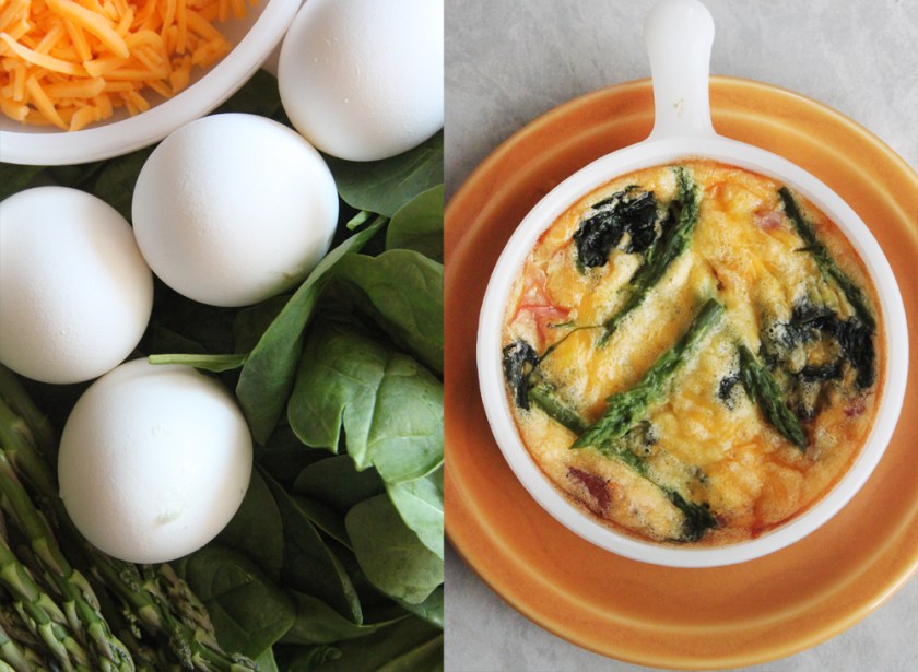 Mini quiches are the perfect answer when you have a late afternoon brunch on the weekends, but need something quick and easy to hold you over until 2 or so. Easter morning, my father cooked up these delicious muffin size quiches. Quick and easy to make, he threw in some eggs, cheddar cheese, spinach, asparagus, bacon and ham– a little taste of everything in one bite.