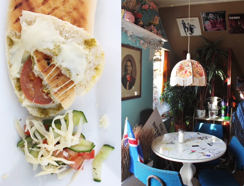 Reykjavik’s streets are filled with so many cool, laidback cafés, it’s rather difficult to choose, but with Café Babalu’s bright colors and welcoming roof terrace, it’s hard to deny. Saturday afternoon my friend and I enjoyed the sunshine and crisp autumn-like temperatures while sharing an amazing pesto, tomato and mozzarella panini and nutella crepe for dessert. The decor is mismatched retro findings to give it that unique yet warm character. It’s the kind of place that serves white wine in a chipped souvenir mug from Germany, but you wouldn’t want it any other way.