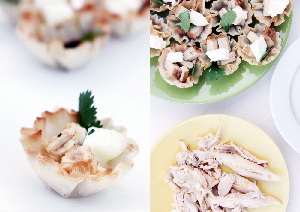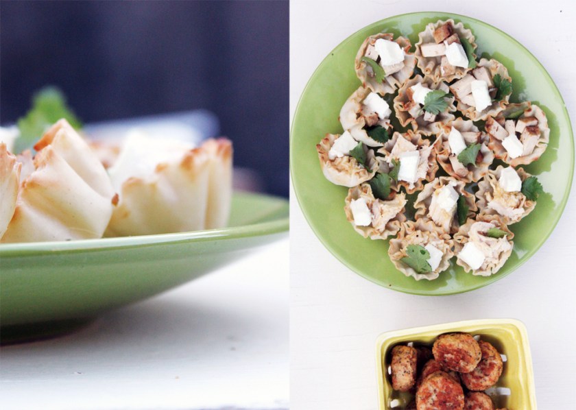 It’s that time of year for all the wings, chips and salsas to come out for the Superbowl parties. While contemplating what to cook up for this evening’s festivities, I was inspired by Eat Yourself Skinny’s BBQ chicken bites. Changing up the recipe a bit for a lighter flavor, I made a couple different versions: Whole Foods pulled chicken with tangerine dressing, Mammuth goat cheese from the farmers market and fresh cilantro into mini phyllo dough shells, and a vegetarian-friendly option that included teriyaki baked tofu. As an additional quick and easy dish, Whole Foods Alaskan Salmon bites are perfect. Go Giants!