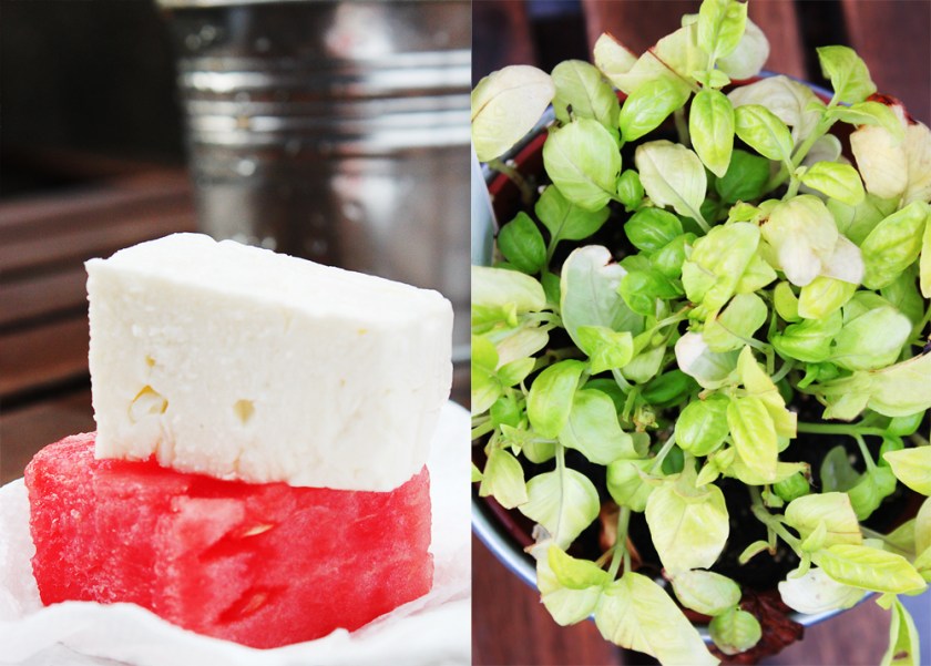 To celebrate the official start of summer, a couple friends and I threw together a salad with one of the season’s iconic fruits: watermelon. Tossing it with some feta cheese and fresh basil from the garden, and topping with some olive oil and balsamic vinegar, it’s a quick and light refreshing salad.