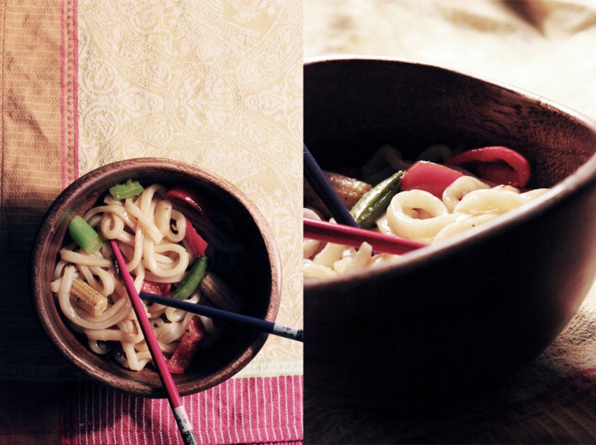 As promised, here’s the Udon noodles and vegetable dish my roommate, Julia cooked up from our ingredients bought at the Japanese Supermarket, Sunrise Mart.