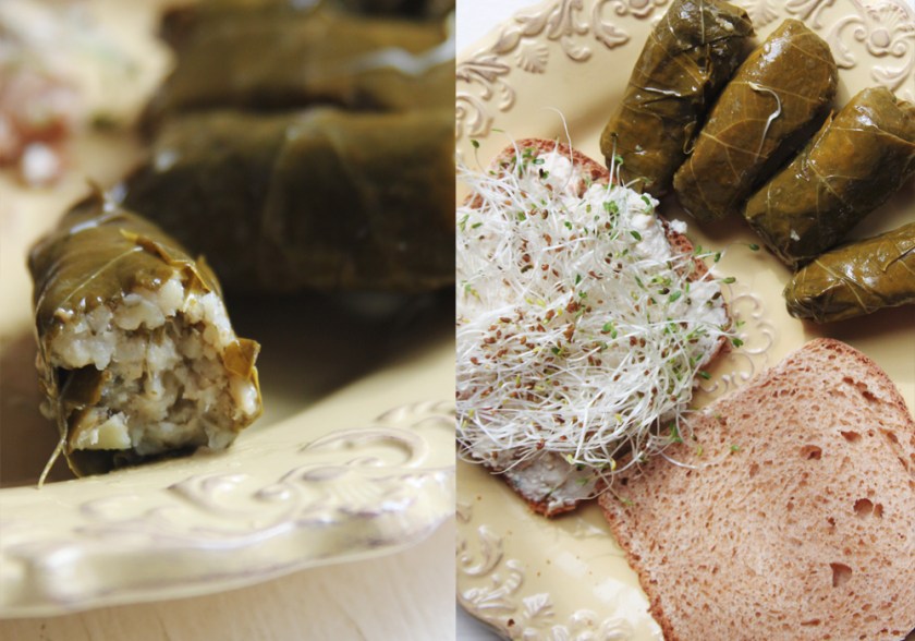 With spring-like temperatures, daylight savings beginning and the weekend arriving, it’s the perfect day to get out the vegetables. Prepared by my roommate, she whipped up this tofu salad spread and alfalfa sprouts on spelt bread with a side of vegetarian stuffed grape leaves. Have a great weekend!